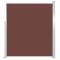 Auvent latéral rétractable 160 x 500 cm MarronCet auvent de jardin, doté d'un grand écran, est un moyen efficace de se protéger du vent constant et du soleil bas tout en assurant votre intimité. La conception simple mais élégante en fait un complément idéal pour votre jardin, terrasse, balcon, etc. Notre store latéral rétractable est doté d'une fonction d'enroulement automatique et sa largeur est réglable jusqu'à 500 cm. L'écran d'extérieur est en polyester résistant aux UV, à la déchirure et à l'eau. La livraison comprend également des accessoires de montage et un manuel. Attention : Risque de blessure ! Lors de la réparation, de la modification, du démontage et de l'élimination du système d'ombrage, les pièces sous tension (p. ex. les bras articulés, les systèmes de contre-tension) doivent être complètement détendues ou sécurisées au préalable. Pour ce faire, il convient de faire appel à un spécialiste ! N'utilisez pas le store s'il est endommagé et doit être réparé ou ajusté. L'auvent latéral doit être rentré si la vitesse du vent est supérieure à 28 km/h. L'auvent latéral doit être rentré en cas de conditions météorologiques défavorables, telles que de fortes pluies ou de la neige. L'utilisation dans des conditions de gel peut endommager le produit. Attention : Risque d'incendie ! N'utilisez pas de barbecues, de chauffages, d'appareils de cuisson ou de bougies à proximité de l'auvent. Attention lors de l'installation, des risques d'écrasement et de cisaillement peuvent exister. Attention aux doigts lors de l'installation. Pour éviter tout risque d'étouffement, gardez ce sac en plastique hors de portée des bébés et des enfants. N'utilisez pas ce sac dans les berceaux, les lits, les carrosses ou les parcs. Ce sac n'est pas un jouet. Danger ! Risque de chocs. Tenir les petites pièces hors de portée des enfants.Avertissement: Le fonctionnement dans des conditions de gel peut endommager le produit. Utilisation externe dans les bâtiments et autres travaux de construction. GPSR