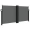 Auvent latéral rétractable anthracite 120x1200 cmCréez une oasis instantanée et privée sur votre balcon, terrasse ou patio en utilisant cet auvent latéral rétractable ! Résistance à l'eau et aux rayons UV : ce brise-vue est fabriqué en 100 % polyester avec un revêtement en polyuréthane (PU), offrant une bonne respirabilité et une excellente protection contre le vent, le soleil, l'eau et les rayons UV.Design pratique : grâce à son design rétractable, l'écran de jardin s'enroule automatiquement lorsque vous retirez la poignée du poteau.Facile à installer : les poteaux peuvent être facilement fixés au sol pour plus de stabilité et de sécurité avec les accessoires de montage inclus.Nombreuses applications : cet auvent latéral polyvalent peut être utilisé dans une variété de lieux, à la fois à l'extérieur comme l'arrière-cour, la terrasse, le jardin, le porche, le balcon et à l'intérieur comme le bureau, la clinique, le studio, le dressing, pour créer de l'espace mural supplémentaire selon les besoins.