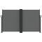 Auvent latéral rétractable anthracite 140x1200 cmCréez une oasis instantanée et privée sur votre balcon, terrasse ou patio en utilisant cet auvent latéral rétractable ! Résistance à l'eau et aux rayons UV : ce brise-vue est fabriqué en 100 % polyester avec un revêtement en polyuréthane (PU), offrant une bonne respirabilité et une excellente protection contre le vent, le soleil, l'eau et les rayons UV.Design pratique : grâce à son design rétractable, l'écran de jardin s'enroule automatiquement lorsque vous retirez la poignée du poteau.Facile à installer : les poteaux peuvent être facilement fixés au sol pour plus de stabilité et de sécurité avec les accessoires de montage inclus.Nombreuses applications : cet auvent latéral polyvalent peut être utilisé dans une variété de lieux, à la fois à l'extérieur comme l'arrière-cour, la terrasse, le jardin, le porche, le balcon et à l'intérieur comme le bureau, la clinique, le studio, le dressing, pour créer de l'espace mural supplémentaire selon les besoins.