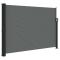 Auvent latéral rétractable anthracite 140x500 cmCréez une oasis instantanée et privée sur votre balcon, terrasse ou patio en utilisant cet auvent latéral rétractable ! Résistance à l'eau et aux rayons UV : ce brise-vue est fabriqué en 100 % polyester avec un revêtement en polyuréthane (PU), offrant une bonne respirabilité et une excellente protection contre le vent, le soleil, l'eau et les rayons UV.Design pratique : grâce à son design rétractable, l'écran de jardin s'enroule automatiquement lorsque vous retirez la poignée du poteau.Facile à installer : les deux poteaux peuvent être facilement fixés au mur et au sol pour plus de stabilité et de sécurité avec les accessoires de montage inclus.Nombreuses applications : cet auvent latéral polyvalent peut être utilisé dans une variété de lieux, à la fois à l'extérieur comme l'arrière-cour, la terrasse, le jardin, le porche, le balcon et à l'intérieur comme le bureau, la clinique, le studio, le dressing, pour créer de l'espace mural supplémentaire selon les besoins. Attention : Risque de blessure ! Lors de la réparation, de la modification, du démontage et de l'élimina tion du système d'ombrage, les pièces sous tension (p. ex. les bras articulés, les systèmes de con tre-tension) doivent être complètement détendues ou sécurisées au préalable. Pour ce faire, il convi ent de faire appel à un spécialiste ! N'utilisez pas le store s'il est endommagé et doit être réparé ou ajusté. L'auvent latéral doit être rentré si la vitesse du vent est supérieure à 28 km/h. L'auvent latéral doit être rentré en cas de conditions météorologiques défavorables, telles que de fortes pluies ou de la neige. L'utilisation dans des conditions de gel peut endommager le produit. Attention : Risque d'in cendie ! N'utilisez pas de barbecues, de chauffages, d'appareils de cuisson ou de bougies à proximité de l'auvent. Attention lors de l'installation, des risques d'écrasement et de cisaillement peuvent exister. Attention aux doigts lors de l'installation. Pour éviter tout risque d'étouffement, gardez ce sac en plastique hors de portée des bébés et des enfants. N'utilisez pas ce sac dans les berceaux, les lits, les carrosses ou les parcs. Ce sac n'est pas un jouet. Danger! Risque de chocs. Tenir les petites pièces hors de portée des enfants.Avertissement: Le fonctionnement dans des conditions de gel peut endommag er le produit. Utilisation externe dans les bâtiments et autres travaux de construction GPSR