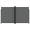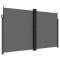 Auvent latéral rétractable anthracite 200x1000 cmCréez une oasis instantanée et privée sur votre balcon, terrasse ou patio en utilisant cet auvent latéral rétractable ! Résistance à l'eau et aux rayons UV : ce brise-vue est fabriqué en 100 % polyester avec un revêtement en polyuréthane (PU), offrant une bonne respirabilité et une excellente protection contre le vent, le soleil, l'eau et les rayons UV.Design pratique : grâce à son design rétractable, l'écran de jardin s'enroule automatiquement lorsque vous retirez la poignée du poteau.Facile à installer : les poteaux peuvent être facilement fixés au sol pour plus de stabilité et de sécurité avec les accessoires de montage inclus.Nombreuses applications : cet auvent latéral polyvalent peut être utilisé dans une variété de lieux, à la fois à l'extérieur comme l'arrière-cour, la terrasse, le jardin, le porche, le balcon et à l'intérieur comme le bureau, la clinique, le studio, le dressing, pour créer de l'espace mural supplémentaire selon les besoins. Attention : Risque de blessure ! Lors de la réparation, de la modification, du démontage et de l'élimina tion du système d'ombrage, les pièces sous tension (p. ex. les bras articulés, les systèmes de con tre-tension) doivent être complètement détendues ou sécurisées au préalable. Pour ce faire, il convi ent de faire appel à un spécialiste ! N'utilisez pas le store s'il est endommagé et doit être réparé ou ajusté. L'auvent latéral doit être rentré si la vitesse du vent est supérieure à 28 km/h. L'auvent latéral doit être rentré en cas de conditions météorologiques défavorables, telles que de fortes pluies ou de la neige. L'utilisation dans des conditions de gel peut endommager le produit. Attention : Risque d'in cendie ! N'utilisez pas de barbecues, de chauffages, d'appareils de cuisson ou de bougies à proximité de l'auvent. Attention lors de l'installation, des risques d'écrasement et de cisaillement peuvent exister. Attention aux doigts lors de l'installation. Pour éviter tout risque d'étouffement, gardez ce sac en plastique hors de portée des bébés et des enfants. N'utilisez pas ce sac dans les berceaux, les lits, les carrosses ou les parcs. Ce sac n'est pas un jouet. Danger! Risque de chocs. Tenir les petites pièces hors de portée des enfants.Avertissement: Le fonctionnement dans des conditions de gel peut endommag er le produit. Utilisation externe dans les bâtiments et autres travaux de construction GPSR