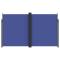 Auvent latéral rétractable bleu 200x600 cmCréez une oasis instantanée et privée sur votre balcon, terrasse ou patio en utilisant cet auvent latéral rétractable ! Résistance à l'eau et aux rayons UV : ce brise-vue est fabriqué en 100 % polyester avec un revêtement en polyuréthane (PU), offrant une bonne respirabilité et une excellente protection contre le vent, le soleil, l'eau et les rayons UV.Design pratique : grâce à son design rétractable, l'écran de jardin s'enroule automatiquement lorsque vous retirez la poignée du poteau.Facile à installer : les poteaux peuvent être facilement fixés au sol pour plus de stabilité et de sécurité avec les accessoires de montage inclus.Nombreuses applications : cet auvent latéral polyvalent peut être utilisé dans une variété de lieux, à la fois à l'extérieur comme l'arrière-cour, la terrasse, le jardin, le porche, le balcon et à l'intérieur comme le bureau, la clinique, le studio, le dressing, pour créer de l'espace mural supplémentaire selon les besoins.