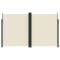 Auvent latéral rétractable crème 200x600 cmCréez une oasis instantanée et privée sur votre balcon, terrasse ou patio en utilisant cet auvent latéral rétractable ! Résistance à l'eau et aux rayons UV : ce brise-vue est fabriqué en 100 % polyester avec un revêtement en polyuréthane (PU), offrant une bonne respirabilité et une excellente protection contre le vent, le soleil, l'eau et les rayons UV.Design pratique : grâce à son design rétractable, l'écran de jardin s'enroule automatiquement lorsque vous retirez la poignée du poteau.Facile à installer : les poteaux peuvent être facilement fixés au sol pour plus de stabilité et de sécurité avec les accessoires de montage inclus.Nombreuses applications : cet auvent latéral polyvalent peut être utilisé dans une variété de lieux, à la fois à l'extérieur comme l'arrière-cour, la terrasse, le jardin, le porche, le balcon et à l'intérieur comme le bureau, la clinique, le studio, le dressing, pour créer de l'espace mural supplémentaire selon les besoins.