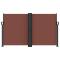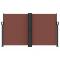 Auvent latéral rétractable marron 140x1200 cmCréez une oasis instantanée et privée sur votre balcon, terrasse ou patio en utilisant cet auvent latéral rétractable ! Résistance à l'eau et aux rayons UV : ce brise-vue est fabriqué en 100 % polyester avec un revêtement en polyuréthane (PU), offrant une bonne respirabilité et une excellente protection contre le vent, le soleil, l'eau et les rayons UV.Design pratique : grâce à son design rétractable, l'écran de jardin s'enroule automatiquement lorsque vous retirez la poignée du poteau.Facile à installer : les poteaux peuvent être facilement fixés au sol pour plus de stabilité et de sécurité avec les accessoires de montage inclus.Nombreuses applications : cet auvent latéral polyvalent peut être utilisé dans une variété de lieux, à la fois à l'extérieur comme l'arrière-cour, la terrasse, le jardin, le porche, le balcon et à l'intérieur comme le bureau, la clinique, le studio, le dressing, pour créer de l'espace mural supplémentaire selon les besoins.