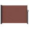 Auvent latéral rétractable marron 140x500 cmCréez une oasis instantanée et privée sur votre balcon, terrasse ou patio en utilisant cet auvent latéral rétractable ! Résistance à l'eau et aux rayons UV : ce brise-vue est fabriqué en 100 % polyester avec un revêtement en polyuréthane (PU), offrant une bonne respirabilité et une excellente protection contre le vent, le soleil, l'eau et les rayons UV.Design pratique : grâce à son design rétractable, l'écran de jardin s'enroule automatiquement lorsque vous retirez la poignée du poteau.Facile à installer : les deux poteaux peuvent être facilement fixés au mur et au sol pour plus de stabilité et de sécurité avec les accessoires de montage inclus.Nombreuses applications : cet auvent latéral polyvalent peut être utilisé dans une variété de lieux, à la fois à l'extérieur comme l'arrière-cour, la terrasse, le jardin, le porche, le balcon et à l'intérieur comme le bureau, la clinique, le studio, le dressing, pour créer de l'espace mural supplémentaire selon les besoins. Attention : Risque de blessure ! Lors de la réparation, de la modification, du démontage et de l'élimina tion du système d'ombrage, les pièces sous tension (p. ex. les bras articulés, les systèmes de con tre-tension) doivent être complètement détendues ou sécurisées au préalable. Pour ce faire, il convi ent de faire appel à un spécialiste ! N'utilisez pas le store s'il est endommagé et doit être réparé ou ajusté. L'auvent latéral doit être rentré si la vitesse du vent est supérieure à 28 km/h. L'auvent latéral doit être rentré en cas de conditions météorologiques défavorables, telles que de fortes pluies ou de la neige. L'utilisation dans des conditions de gel peut endommager le produit. Attention : Risque d'in cendie ! N'utilisez pas de barbecues, de chauffages, d'appareils de cuisson ou de bougies à proximité de l'auvent. Attention lors de l'installation, des risques d'écrasement et de cisaillement peuvent exister. Attention aux doigts lors de l'installation. Pour éviter tout risque d'étouffement, gardez ce sac en plastique hors de portée des bébés et des enfants. N'utilisez pas ce sac dans les berceaux, les lits, les carrosses ou les parcs. Ce sac n'est pas un jouet. Danger! Risque de chocs. Tenir les petites pièces hors de portée des enfants.Avertissement: Le fonctionnement dans des conditions de gel peut endommag er le produit. Utilisation externe dans les bâtiments et autres travaux de construction GPSR