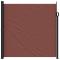 Auvent latéral rétractable marron 200x600 cmCréez une oasis instantanée et privée sur votre balcon, terrasse ou patio en utilisant cet auvent latéral rétractable ! Résistance à l'eau et aux rayons UV : ce brise-vue est fabriqué en 100 % polyester avec un revêtement en polyuréthane (PU), offrant une bonne respirabilité et une excellente protection contre le vent, le soleil, l'eau et les rayons UV.Design pratique : grâce à son design rétractable, l'écran de jardin s'enroule automatiquement lorsque vous retirez la poignée du poteau.Facile à installer : les deux poteaux peuvent être facilement fixés au mur et au sol pour plus de stabilité et de sécurité avec les accessoires de montage inclus.Nombreuses applications : cet auvent latéral polyvalent peut être utilisé dans une variété de lieux, à la fois à l'extérieur comme l'arrière-cour, la terrasse, le jardin, le porche, le balcon et à l'intérieur comme le bureau, la clinique, le studio, le dressing, pour créer de l'espace mural supplémentaire selon les besoins. Attention : Risque de blessure ! Lors de la réparation, de la modification, du démontage et de l'élimina tion du système d'ombrage, les pièces sous tension (p. ex. les bras articulés, les systèmes de con tre-tension) doivent être complètement détendues ou sécurisées au préalable. Pour ce faire, il convi ent de faire appel à un spécialiste ! N'utilisez pas le store s'il est endommagé et doit être réparé ou ajusté. L'auvent latéral doit être rentré si la vitesse du vent est supérieure à 28 km/h. L'auvent latéral doit être rentré en cas de conditions météorologiques défavorables, telles que de fortes pluies ou de la neige. L'utilisation dans des conditions de gel peut endommager le produit. Attention : Risque d'in cendie ! N'utilisez pas de barbecues, de chauffages, d'appareils de cuisson ou de bougies à proximité de l'auvent. Attention lors de l'installation, des risques d'écrasement et de cisaillement peuvent exister. Attention aux doigts lors de l'installation. Pour éviter tout risque d'étouffement, gardez ce sac en plastique hors de portée des bébés et des enfants. N'utilisez pas ce sac dans les berceaux, les lits, les carrosses ou les parcs. Ce sac n'est pas un jouet. Danger! Risque de chocs. Tenir les petites pièces hors de portée des enfants.Avertissement: Le fonctionnement dans des conditions de gel peut endommag er le produit. Utilisation externe dans les bâtiments et autres travaux de construction GPSR