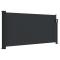Auvent latéral rétractable noir 100x500 cmCréez une oasis instantanée et privée sur votre balcon, terrasse ou patio en utilisant cet auvent latéral rétractable ! Résistance à l'eau et aux rayons UV : ce brise-vue est fabriqué en 100 % polyester avec un revêtement en polyuréthane (PU), offrant une bonne respirabilité et une excellente protection contre le vent, le soleil, l'eau et les rayons UV. Design pratique : grâce à son design rétractable, l'écran de jardin s'enroule automatiquement lorsque vous retirez la poignée du poteau. Facile à installer : les deux poteaux peuvent être facilement fixés au mur et au sol pour plus de stabilité et de sécurité avec les accessoires de montage inclus. Nombreuses applications : cet auvent latéral polyvalent peut être utilisé dans une variété de lieux, à la fois à l'extérieur comme l'arrière-cour, la terrasse, le jardin, le porche, le balcon et à l'intérieur comme le bureau, la clinique, le studio, le dressing, pour créer de l'espace mural supplémentaire selon les besoins. Attention : Risque de blessure ! Lors de la réparation, de la modification, du démontage et de l'élimina tion du système d'ombrage, les pièces sous tension (p. ex. les bras articulés, les systèmes de con tre-tension) doivent être complètement détendues ou sécurisées au préalable. Pour ce faire, il convi ent de faire appel à un spécialiste ! N'utilisez pas le store s'il est endommagé et doit être réparé ou ajusté. L'auvent latéral doit être rentré si la vitesse du vent est supérieure à 28 km/h. L'auvent latéral doit être rentré en cas de conditions météorologiques défavorables, telles que de fortes pluies ou de la neige. L'utilisation dans des conditions de gel peut endommager le produit. Attention : Risque d'in cendie ! N'utilisez pas de barbecues, de chauffages, d'appareils de cuisson ou de bougies à proximité de l'auvent. Attention lors de l'installation, des risques d'écrasement et de cisaillement peuvent exister. Attention aux doigts lors de l'installation. Pour éviter tout risque d'étouffement, gardez ce sac en plastique hors de portée des bébés et des enfants. N'utilisez pas ce sac dans les berceaux, les lits, les carrosses ou les parcs. Ce sac n'est pas un jouet. Danger! Risque de chocs. Tenir les petites pièces hors de portée des enfants.Avertissement: Le fonctionnement dans des conditions de gel peut endommag er le produit. Utilisation externe dans les bâtiments et autres travaux de construction GPSR