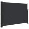 Auvent latéral rétractable noir 140x500 cmCréez une oasis instantanée et privée sur votre balcon, terrasse ou patio en utilisant cet auvent latéral rétractable ! Résistance à l'eau et aux rayons UV : ce brise-vue est fabriqué en 100 % polyester avec un revêtement en polyuréthane (PU), offrant une bonne respirabilité et une excellente protection contre le vent, le soleil, l'eau et les rayons UV. Design pratique : grâce à son design rétractable, l'écran de jardin s'enroule automatiquement lorsque vous retirez la poignée du poteau. Facile à installer : les deux poteaux peuvent être facilement fixés au mur et au sol pour plus de stabilité et de sécurité avec les accessoires de montage inclus. Nombreuses applications : cet auvent latéral polyvalent peut être utilisé dans une variété de lieux, à la fois à l'extérieur comme l'arrière-cour, la terrasse, le jardin, le porche, le balcon et à l'intérieur comme le bureau, la clinique, le studio, le dressing, pour créer de l'espace mural supplémentaire selon les besoins. Attention : Risque de blessure ! Lors de la réparation, de la modification, du démontage et de l'élimina tion du système d'ombrage, les pièces sous tension (p. ex. les bras articulés, les systèmes de con tre-tension) doivent être complètement détendues ou sécurisées au préalable. Pour ce faire, il convi ent de faire appel à un spécialiste ! N'utilisez pas le store s'il est endommagé et doit être réparé ou ajusté. L'auvent latéral doit être rentré si la vitesse du vent est supérieure à 28 km/h. L'auvent latéral doit être rentré en cas de conditions météorologiques défavorables, telles que de fortes pluies ou de la neige. L'utilisation dans des conditions de gel peut endommager le produit. Attention : Risque d'in cendie ! N'utilisez pas de barbecues, de chauffages, d'appareils de cuisson ou de bougies à proximité de l'auvent. Attention lors de l'installation, des risques d'écrasement et de cisaillement peuvent exister. Attention aux doigts lors de l'installation. Pour éviter tout risque d'étouffement, gardez ce sac en plastique hors de portée des bébés et des enfants. N'utilisez pas ce sac dans les berceaux, les lits, les carrosses ou les parcs. Ce sac n'est pas un jouet. Danger! Risque de chocs. Tenir les petites pièces hors de portée des enfants.Avertissement: Le fonctionnement dans des conditions de gel peut endommag er le produit. Utilisation externe dans les bâtiments et autres travaux de construction GPSR