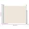 Auvent latéral rétractable de patio 140x500 cm CrèmeCe store latéral à la fois simple et élégant crée un petit coin confortable tout en vous procurant l'intimité dont vous avez besoin sur votre terrasse ou votre balcon. Cela peut également aider à protéger les personnes du vent et du soleil bas. L'écran est en polyester résistant aux UV et aux déchirures. La cassette est installée sur une base en acier solide en position verticale et le store rétractable peut être facilement retiré tout droit. Le store a également une fonction de retour en arrière automatique. Le store de balcon est facile à assembler. La livraison comprend des accessoires de montage. Attention : Risque de blessure ! Lors de la réparation, de la modification, du démontage et de l'élimination du système d'ombrage, les pièces sous tension (p. ex. les bras articulés, les systèmes de contre-tension) doivent être complètement détendues ou sécurisées au préalable. Pour ce faire, il convient de faire appel à un spécialiste ! N'utilisez pas le store s'il est endommagé et doit être réparé ou ajusté. L'auvent latéral doit être rentré si la vitesse du vent est supérieure à 27 km/h. L'auvent latéral doit être rentré en cas de conditions météorologiques défavorables telles que de fortes pluies ou de la neige. L'utilisation dans des conditions de gel peut endommager le produit. Attention : Risque d'incendie ! N'utilisez pas de barbecues, de chauffages, d'appareils de cuisson ou de bougies à proximité de l'auvent. Attention lors de l'installation, des risques d'écrasement et de cisaillement peuvent exister. Attention aux doigts lors de l'installation. Pour éviter tout risque d'étouffement, gardez ce sac en plastique hors de portée des bébés et des enfants. Ne pas utiliser ce sac dans les berceaux, les lits, les carrosses ou les parcs d'enfants. Ce sac n'est pas un jouet. Danger ! Risque de chocs. Tenir les petites pièces hors de portée des enfants.Avertissement: Le fonctionnement dans des conditions de gel peut endommager le produit. Utilisation externe dans les bâtiments et autres travaux de construction. GPSR