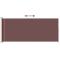 Auvent latéral rétractable de patio 220x500 cm MarronCe store latéral à la fois simple et élégant crée un petit coin confortable tout en vous procurant l'intimité dont vous avez besoin sur votre terrasse ou votre balcon. Cela peut également aider à protéger les personnes du vent et du soleil bas. L'écran est en polyester résistant aux UV, à l'eau et à la déchirure. La cassette est installée sur une base en acier robuste en position verticale, et l'auvent rétractable peut être tiré tout droit. L'auvent dispose d'une fonction de retour automatique. La livraison comprend également des accessoires de montage. Attention : Risque de blessure ! Lors de la réparation, de la modification, du démontage et de l'élimination du système d'ombrage, les pièces sous tension (p. ex. les bras articulés, les systèmes de contre-tension) doivent être complètement détendues ou sécurisées au préalable. Pour ce faire, il convient de faire appel à un spécialiste ! N'utilisez pas le store s'il est endommagé et doit être réparé ou ajusté. L'auvent latéral doit être rentré si la vitesse du vent est supérieure à 28 km/h. L'auvent latéral doit être rentré en cas de conditions météorologiques défavorables, telles que de fortes pluies ou de la neige. L'utilisation dans des conditions de gel peut endommager le produit. Attention : Risque d'incendie ! N'utilisez pas de barbecues, de chauffages, d'appareils de cuisson ou de bougies à proximité de l'auvent. Attention lors de l'installation, des risques d'écrasement et de cisaillement peuvent exister. Attention aux doigts lors de l'installation. Pour éviter tout risque d'étouffement, gardez ce sac en plastique hors de portée des bébés et des enfants. N'utilisez pas ce sac dans les berceaux, les lits, les carrosses ou les parcs. Ce sac n'est pas un jouet. Danger ! Risque de chocs. Tenir les petites pièces hors de portée des enfants.