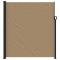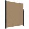 Auvent latéral rétractable taupe 220x300 cmCréez une oasis instantanée et privée sur votre balcon, terrasse ou patio en utilisant cet auvent latéral rétractable ! Résistance à l'eau et aux rayons UV : ce brise-vue est fabriqué en 100 % polyester avec un revêtement en polyuréthane (PU), offrant une bonne respirabilité et une excellente protection contre le vent, le soleil, l'eau et les rayons UV. Design pratique : grâce à son design rétractable, l'écran de jardin s'enroule automatiquement lorsque vous retirez la poignée du poteau. Facile à installer : les deux poteaux peuvent être facilement fixés au mur et au sol pour plus de stabilité et de sécurité avec les accessoires de montage inclus. Nombreuses applications : cet auvent latéral polyvalent peut être utilisé dans une variété de lieux, à la fois à l'extérieur comme l'arrière-cour, la terrasse, le jardin, le porche, le balcon et à l'intérieur comme le bureau, la clinique, le studio, le dressing, pour créer de l'espace mural supplémentaire selon les besoins. Avertissement: Le fonctionnement dans des conditions de gel peut endommager le produit. Utilisation externe dans les bâtiments et autres travaux de construction. GPSR