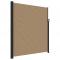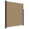 Auvent latéral rétractable taupe 220x600 cmCréez une oasis instantanée et privée sur votre balcon, terrasse ou patio en utilisant cet auvent latéral rétractable ! Résistance à l'eau et aux rayons UV : ce brise-vue est fabriqué en 100 % polyester avec un revêtement en polyuréthane (PU), offrant une bonne respirabilité et une excellente protection contre le vent, le soleil, l'eau et les rayons UV.Design pratique : grâce à son design rétractable, l'écran de jardin s'enroule automatiquement lorsque vous retirez la poignée du poteau.Facile à installer : les deux poteaux peuvent être facilement fixés au mur et au sol pour plus de stabilité et de sécurité avec les accessoires de montage inclus.Nombreuses applications : cet auvent latéral polyvalent peut être utilisé dans une variété de lieux, à la fois à l'extérieur comme l'arrière-cour, la terrasse, le jardin, le porche, le balcon et à l'intérieur comme le bureau, la clinique, le studio, le dressing, pour créer de l'espace mural supplémentaire selon les besoins. Attention : Risque de blessure ! Lors de la réparation, de la modification, du démontage et de l'élimina tion du système d'ombrage, les pièces sous tension (p. ex. les bras articulés, les systèmes de con tre-tension) doivent être complètement détendues ou sécurisées au préalable. Pour ce faire, il convi ent de faire appel à un spécialiste ! N'utilisez pas le store s'il est endommagé et doit être réparé ou ajusté. L'auvent latéral doit être rentré si la vitesse du vent est supérieure à 28 km/h. L'auvent latéral doit être rentré en cas de conditions météorologiques défavorables, telles que de fortes pluies ou de la neige. L'utilisation dans des conditions de gel peut endommager le produit. Attention : Risque d'in cendie ! N'utilisez pas de barbecues, de chauffages, d'appareils de cuisson ou de bougies à proximité de l'auvent. Attention lors de l'installation, des risques d'écrasement et de cisaillement peuvent exister. Attention aux doigts lors de l'installation. Pour éviter tout risque d'étouffement, gardez ce sac en plastique hors de portée des bébés et des enfants. N'utilisez pas ce sac dans les berceaux, les lits, les carrosses ou les parcs. Ce sac n'est pas un jouet. Danger! Risque de chocs. Tenir les petites pièces hors de portée des enfants.Avertissement: Le fonctionnement dans des conditions de gel peut endommag er le produit. Utilisation externe dans les bâtiments et autres travaux de construction GPSR