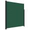 Auvent latéral rétractable vert foncé 220x500 cmCréez une oasis instantanée et privée sur votre balcon, terrasse ou patio en utilisant cet auvent latéral rétractable ! Résistance à l'eau et aux rayons UV : ce brise-vue est fabriqué en 100 % polyester avec un revêtement en polyuréthane (PU), offrant une bonne respirabilité et une excellente protection contre le vent, le soleil, l'eau et les rayons UV. Design pratique : grâce à son design rétractable, l'écran de jardin s'enroule automatiquement lorsque vous retirez la poignée du poteau. Facile à installer : les deux poteaux peuvent être facilement fixés au mur et au sol pour plus de stabilité et de sécurité avec les accessoires de montage inclus. Nombreuses applications : cet auvent latéral polyvalent peut être utilisé dans une variété de lieux, à la fois à l'extérieur comme l'arrière-cour, la terrasse, le jardin, le porche, le balcon et à l'intérieur comme le bureau, la clinique, le studio, le dressing, pour créer de l'espace mural supplémentaire selon les besoins. Avertissement: Le fonctionnement dans des conditions de gel peut endommager le produit. Utilisation externe dans les bâtiments et autres travaux de construction. GPSR