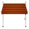 Auvent manuel rétractable 200 cm Orange et marronCet auvent rétractable sera idéal devant la fenêtre, sur la terrasse, le balcon ou dans votre jardin. Cet auvent hydrofuge et anti-salissure et résistant aux UV et aux intempéries est fabriqué en polyester de qualité avec un revêtement PU. Le cadre en acier fort rend l'auvent robuste et durable. L'auvent en polyester facile à nettoyer peut être retiré et lavé. Grâce à la manivelle de la poignée, ce store est rétractable. La hauteur et l'angle du store peuvent également être ajustés. C'est facile à assembler. Cet auvent est le choix idéal pour votre espace de vie extérieur et peut être actionné manuellement.