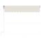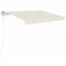 Auvent manuel rétractable 350x250 cm CrèmeCréez un endroit agréable et frais dans vos espaces extérieurs avec cet auvent rétractable ! Construit avec un cadre en aluminium enduit de poudre résistant à la rouille, cet auvent d'extérieur est léger et robuste. Le tissu de l'auvent de patio est en polyester haute densité avec revêtement en PU, qui est résistant aux UV et à l'eau. De plus, l'angle et la hauteur peuvent être ajustés pour répondre à vos besoins spécifiques. Vous pouvez ouvrir et rétracter l'auvent en douceur avec la manivelle longue. Les enfants doivent être surveillés pour s'assurer qu'ils ne jouent pas avec l'appareil.Tenez les enfants éloignés de la zone de montage. Attention : lisez attentivement les instructions avant l'utilisation et les conserver pour référence ultérieure.