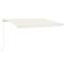 Auvent manuel rétractable 400x350 cm CrèmeCréez un endroit agréable et frais dans vos espaces extérieurs avec cet auvent rétractable ! Construit avec un cadre en aluminium enduit de poudre résistant à la rouille, cet auvent d'extérieur est léger et robuste. Le tissu de l'auvent de patio est en polyester haute densité avec revêtement en PU, qui est résistant aux UV et à l'eau. De plus, l'angle et la hauteur peuvent être ajustés pour répondre à vos besoins spécifiques. Vous pouvez ouvrir et rétracter l'auvent en douceur avec la manivelle longue. Les enfants doivent être surveillés pour s'assurer qu'ils ne jouent pas avec l'appareil.Tenez les enfants éloignés de la zone de montage. Attention : lisez attentivement les instructions avant l'utilisation et les conserver pour référence ultérieure.
