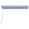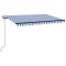 Auvent manuel rétractable 450x350 cm Bleu et blancCréez un endroit agréable et frais dans vos espaces extérieurs avec cet auvent rétractable ! Construit avec un cadre en aluminium enduit de poudre résistant à la rouille, cet auvent d'extérieur est léger et robuste. Le tissu de l'auvent de patio est en polyester haute densité avec revêtement en PU, qui est résistant aux UV et à l'eau. De plus, l'angle et la hauteur peuvent être ajustés pour répondre à vos besoins spécifiques. Vous pouvez ouvrir et rétracter l'auvent en douceur avec la manivelle longue. Les enfants doivent être surveillés pour s'assurer qu'ils ne jouent pas avec l'appareil.Tenez les enfants éloignés de la zone de montage. Attention : lisez attentivement les instructions avant l'utilisation et les conserver pour référence ultérieure.