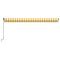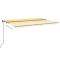 Auvent manuel rétractable 500x300 cm Jaune et blancCréez un endroit agréable et frais dans vos espaces extérieurs avec cet auvent rétractable ! Construit avec un cadre en aluminium enduit de poudre résistant à la rouille, cet auvent d'extérieur est léger et robuste. Le tissu de l'auvent de patio est en polyester haute densité avec revêtement en PU, qui est résistant aux UV et à l'eau. De plus, l'angle et la hauteur peuvent être ajustés pour répondre à vos besoins spécifiques. Vous pouvez ouvrir et rétracter l'auvent en douceur avec la manivelle longue. Les enfants doivent être surveillés pour s'assurer qu'ils ne jouent pas avec l'appareil.Tenez les enfants éloignés de la zone de montage. Attention : lisez attentivement les instructions avant l'utilisation et les conserver pour référence ultérieure.