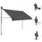 Auvent manuel rétractable avec LED 250 cm AnthraciteCet auvent rétractable sera idéal devant la fenêtre, sur la terrasse, le balcon ou dans votre jardin. Cet auvent hydrofuge et anti-salissure et résistant aux UV et aux intempéries est fabriqué en polyester de qualité avec un revêtement PU. Le cadre en acier fort rend l'auvent robuste et durable. L'auvent en polyester facile à nettoyer peut être retiré et lavé. Grâce à la manivelle de la poignée, ce store est rétractable. La hauteur et l'angle du store peuvent également être ajustés. De plus, les lampes LED alimentées par l'énergie solaire permettent d'éclairer la nuit. L'auvent est facile à assembler. Cet auvent est le choix idéal pour votre espace de vie extérieur et peut être actionné manuellement. Ce produit ne doit pas être éliminé avec les autres déchets ménagers dans l'Union européenne.