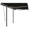 Auvent manuel rétractable avec LED 3,5x2,5 m AnthraciteCréez un endroit agréable et frais sur votre terrasse et protégez-vous des rayons UV avec cet auvent rétractable manuel ! Cet auvent d'extérieur est construit avec un cadre en aluminium enduit de poudre résistant à la rouille, ce qui le rend léger mais robuste. Le solide poteau en fer le rend stable. Le tissu de l'auvent de patio est en polyester haute densité avec revêtement en PU, qui est résistant aux UV et à l'eau. l'angle et la hauteur peuvent être ajustés pour répondre à vos besoins spécifiques. Vous pouvez ouvrir et rétracter l'auvent en douceur avec la manivelle longue. De plus, les lampes à LED alimentées par l'énergie solaire assurent un éclairage nocturne économe en énergie. Le mode d'emploi doit être lu avant le montage et l'utilisation du produit. Conservez ce manuel pour pouvoir vous y référer ultérieurement. Ce produit est destiné à être utilisé à l'extérieur et à l'intérieur comme protection solaire ou décoration uniquement. Ne l'utilisez jamais à d'autres fins et ne le modifiez pas. Ne l'utilisez pas dans des endroits soumis à des vibrations, à des impulsions ou à des températures élevées, comme les murs situés à proximité d'un four. Portez toujours un équipement de protection individuelle approprié lorsque vous montez et réglez le store. Il y a un risque de chute lors de travaux en hauteur, utilisez une protection anti-chute appropriée. Soyez prudent lors de l'installation, des risques d'écrasement et de cisaillement peuvent exister. N'enlevez PAS les bandes de sécurité. Ils ne peuvent être enlevés qu'une fois que toutes les étapes de l'assemblage sont terminées, que tous les boulons sont fixés et que l'article est fixé au mur. Des blessures graves peuvent résulter d'un retrait prématuré de l'emballage. Ce produit et ses pièces de fixation ne conviennent que pour une installation sur un mur en ciment ordinaire ou sur une maçonnerie stable et non enduite. Si le mur/la maçonnerie présente des fissures, vous devez consulter un professionnel. Si votre bâtiment possède une enveloppe extérieure (telle qu'une isolation, un double mur en briques ou un parement en briques), l'installation doit être effectuée par un professionnel. Ne l'installez jamais dans des endroits élevés et venteux, car le parasol pourrait tomber et blesser des personnes. N'installez pas le store si des pièces endommagées ou manquantes sont trouvées. Le store extérieur doit être rétracté si la vitesse du vent est supérieure à 28km/h. Avant d'ouvrir le store, assurez-vous que tous les supports sont solidement fixés aux montants du mur et que tous les boulons sont correctement serrés. FERMEZ TOUJOURS le store en cas de vent fort ou de bourrasque, de pluie et lorsqu'il n'est pas utilisé. Le non-respect de cette consigne peut entraîner des blessures corporelles et/ou des dommages matériels. De plus, les bras d'extension sont soumis à une forte tension et peuvent causer des dommages ou des blessures graves. Les enfants doivent être surveillés pour s'assurer qu'ils ne jouent pas avec l'appareil. N'utilisez pas l'appareil si une réparation ou un réglage est nécessaire. N'utilisez pas le store lorsque des travaux d'entretien, tels que le nettoyage des vitres, sont effectués à proximité. L'utilisation dans des conditions de gel peut endommager le store. Ne placez pas d'objets lourds sur l'armature, car ils pourraient tomber et causer des dommages. Des fixations trop serrées ou trop lâches peuvent endommager le produit ou être dangereuses pour les personnes. Attention : La toile ne doit pas être enfoncée pendant le fonctionnement, sinon l'eau s'y accumulera. Veuillez ne pas décoller et laver le tissu. Si vous devez remplacer le tissu, demandez l'aide d'experts. Faites attention lorsque vous actionnez le déverrouillage manuel alors que le store extérieur est rétracté, car il peut tomber rapidement si les ressorts sont faibles ou cassés. Danger ! Ressort fort lors de l'ouverture. Ne retirez pas cette corde si vous n'avez pas terminé toutes les étapes d'assemblage avec tous les boulons fixés et l'article fixé au mur ! Avertissement! Faire attention en desserrant les bras, car ils sont sous tension ! Un relâchement soudain du bras d'un auvent à bras articulés peut provoquer des blessures. Avertissement : Les instructions d'utilisation doivent être lues avant d'utiliser le produit. Avertissement: Le fonctionnement dans des conditions de gel peut endommager le produit. Utilisation externe dans les bâtiments et autres travaux de construction. GPSR
