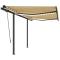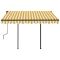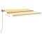 Auvent manuel rétractable avec LED 3,5x2,5 m Jaune et blancCréez un endroit agréable et frais sur votre terrasse et protégez-vous des rayons UV avec cet auvent rétractable manuel ! Cet auvent d'extérieur est construit avec un cadre en aluminium enduit de poudre résistant à la rouille, ce qui le rend léger mais robuste. Le solide poteau en fer le rend stable. Le tissu de l'auvent de patio est en polyester haute densité avec revêtement en PU, qui est résistant aux UV et à l'eau. l'angle et la hauteur peuvent être ajustés pour répondre à vos besoins spécifiques. Vous pouvez ouvrir et rétracter l'auvent en douceur avec la manivelle longue. De plus, les lampes à LED alimentées par l'énergie solaire assurent un éclairage nocturne économe en énergie. Le mode d'emploi doit être lu avant le montage et l'utilisation du produit. Conservez ce manuel pour pouvoir vous y référer ultérieurement. Ce produit est destiné à être utilisé à l'extérieur et à l'intérieur comme protection solaire ou décoration uniquement. Ne l'utilisez jamais à d'autres fins et ne le modifiez pas. Ne l'utilisez pas dans des endroits soumis à des vibrations, à des impulsions ou à des températures élevées, comme les murs situés à proximité d'un four. Portez toujours un équipement de protection individuelle approprié lorsque vous montez et réglez le store. Il y a un risque de chute lors de travaux en hauteur, utilisez une protection anti-chute appropriée. Soyez prudent lors de l'installation, des risques d'écrasement et de cisaillement peuvent exister. N'enlevez PAS les bandes de sécurité. Ils ne peuvent être enlevés qu'une fois que toutes les étapes de l'assemblage sont terminées, que tous les boulons sont fixés et que l'article est fixé au mur. Des blessures graves peuvent résulter d'un retrait prématuré de l'emballage. Ce produit et ses pièces de fixation ne conviennent que pour une installation sur un mur en ciment ordinaire ou sur une maçonnerie stable et non enduite. Si le mur/la maçonnerie présente des fissures, vous devez consulter un professionnel. Si votre bâtiment possède une enveloppe extérieure (telle qu'une isolation, un double mur en briques ou un parement en briques), l'installation doit être effectuée par un professionnel. Ne l'installez jamais dans des endroits élevés et venteux, car le parasol pourrait tomber et blesser des personnes. N'installez pas le store si des pièces endommagées ou manquantes sont trouvées. Le store extérieur doit être rétracté si la vitesse du vent est supérieure à 28km/h. Avant d'ouvrir le store, assurez-vous que tous les supports sont solidement fixés aux montants du mur et que tous les boulons sont correctement serrés. FERMEZ TOUJOURS le store en cas de vent fort ou de bourrasque, de pluie et lorsqu'il n'est pas utilisé. Le non-respect de cette consigne peut entraîner des blessures corporelles et/ou des dommages matériels. De plus, les bras d'extension sont soumis à une forte tension et peuvent causer des dommages ou des blessures graves. Les enfants doivent être surveillés pour s'assurer qu'ils ne jouent pas avec l'appareil. N'utilisez pas l'appareil si une réparation ou un réglage est nécessaire. N'utilisez pas le store lorsque des travaux d'entretien, tels que le nettoyage des vitres, sont effectués à proximité. L'utilisation dans des conditions de gel peut endommager le store. Ne placez pas d'objets lourds sur l'armature, car ils pourraient tomber et causer des dommages. Des fixations trop serrées ou trop lâches peuvent endommager le produit ou être dangereuses pour les personnes. Attention : La toile ne doit pas être enfoncée pendant le fonctionnement, sinon l'eau s'y accumulera. Veuillez ne pas décoller et laver le tissu. Si vous devez remplacer le tissu, demandez l'aide d'experts. Faites attention lorsque vous actionnez le déverrouillage manuel alors que le store extérieur est rétracté, car il peut tomber rapidement si les ressorts sont faibles ou cassés. Danger ! Ressort fort lors de l'ouverture. Ne retirez pas cette corde si vous n'avez pas terminé toutes les étapes d'assemblage avec tous les boulons fixés et l'article fixé au mur ! Avertissement! Faire attention en desserrant les bras, car ils sont sous tension ! Un relâchement soudain du bras d'un auvent à bras articulés peut provoquer des blessures. Avertissement : Les instructions d'utilisation doivent être lues avant d'utiliser le produit. Avertissement: Le fonctionnement dans des conditions de gel peut endommager le produit. Utilisation externe dans les bâtiments et autres travaux de construction. GPSR