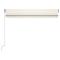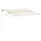 Auvent manuel rétractable avec LED 300x250 cm CrèmeCréez un endroit agréable et frais dans vos espaces extérieurs avec cet auvent rétractable ! Cet auvent d'extérieur est construit avec un cadre en aluminium enduit de poudre résistant à la rouille, ce qui le rend léger mais robuste. Le tissu de l'auvent de patio est en polyester haute densité avec revêtement en PU, qui est résistant aux UV et à l'eau. De plus, l'angle et la hauteur peuvent être ajustés pour répondre à vos besoins spécifiques. Vous pouvez ouvrir et rétracter l'auvent en douceur avec la manivelle longue. De plus, les lampes à LED alimentées par l'énergie solaire assurent un éclairage nocturne économe en énergie. Danger ! Ressort fort lors de l'ouverture. Ne retirez pas cette corde si vous n'avez pas terminé toutes les étapes d'assemblage avec tous les boulons fixés et l'article fixé au mur ! Avertissement! Faire attention en desserrant les bras, car ils sont sous tension ! Un relâchement soudain du bras d'un auvent à bras articulés peut provoquer des blessures. Avertissement : Les instructions d'utilisation doivent être lues avant d'utiliser le produit. Avertissement: Le fonctionnement dans des conditions de gel peut endommager le produit. Utilisation externe dans les bâtiments et autres travaux de construction.
