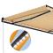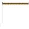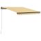 Auvent manuel rétractable avec LED 300x250 cm Jaune et blancCréez un endroit agréable et frais sur votre terrasse et protégez-vous des rayons UV avec notre auvent rétractable manuel ! Cet auvent est idéal pour l'ombrage des fenêtres, dans les balcons, terrasses, cafés, ainsi que dans les restaurants avec vérandas arrière. Construit avec un cadre en aluminium résistant à la rouille et enduit de poudre, une conception légère et une structure solide, cet auvent peut résister à une certaine échelle de puissance du vent. Le tissu de l'auvent à bras pliable est en polyester haute densité avec revêtement PU, résistant à l'eau et aux UV et à la décoloration. L'angle et la hauteur peuvent être ajustés pour répondre à vos besoins spécifiques. Vous pouvez ouvrir et rétracter l'auvent extérieur en douceur via la manivelle longue. De plus, les lumières LED à énergie solaire sont attachées au bras, en fournissant de l'éclairage efficient en énergie la nuit. L'auvent avec LED est facile à monter sur le mur. Le matériel de montage et le manuel nécessaires sont inclus dans la livraison. Le mode d'emploi doit être lu avant le montage et l'utilisation du produit. Conservez ce manuel pour pouvoir vous y référer ultérieurement. Ce produit est destiné à être utilisé à l'extérieur et à l'intérieur comme protection solaire ou décoration uniquement. Ne l'utilisez jamais à d'autres fins et ne le modifiez pas. Ne l'utilisez pas dans des endroits soumis à des vibrations, à des impulsions ou à des températures élevées, comme les murs situés à proximité d'un four. Portez toujours un équipement de protection individuelle approprié lorsque vous montez et réglez le store. Il y a un risque de chute lors de travaux en hauteur, utilisez une protection anti-chute appropriée. Soyez prudent lors de l'installation, des risques d'écrasement et de cisaillement peuvent exister. N'enlevez PAS les bandes de sécurité. Ils ne peuvent être enlevés qu'une fois que toutes les étapes de l'assemblage sont terminées, que tous les boulons sont fixés et que l'article est fixé au mur. Des blessures graves peuvent résulter d'un retrait prématuré de l'emballage. Ce produit et ses pièces de fixation ne conviennent que pour une installation sur un mur en ciment ordinaire ou sur une maçonnerie stable et non enduite. Si le mur/la maçonnerie présente des fissures, vous devez consulter un professionnel. Si votre bâtiment possède une enveloppe extérieure (telle qu'une isolation, un double mur en briques ou un parement en briques), l'installation doit être effectuée par un professionnel. Ne l'installez jamais dans des endroits élevés et venteux, car le parasol pourrait tomber et blesser des personnes. N'installez pas le store si des pièces endommagées ou manquantes sont trouvées. Le store extérieur doit être rétracté si la vitesse du vent est supérieure à 28km/h. Avant d'ouvrir le store, assurez-vous que tous les supports sont solidement fixés aux montants du mur et que tous les boulons sont correctement serrés. FERMEZ TOUJOURS le store en cas de vent fort ou de bourrasque, de pluie et lorsqu'il n'est pas utilisé. Le non-respect de cette consigne peut entraîner des blessures corporelles et/ou des dommages matériels. De plus, les bras d'extension sont soumis à une forte tension et peuvent causer des dommages ou des blessures graves. Les enfants doivent être surveillés pour s'assurer qu'ils ne jouent pas avec l'appareil. N'utilisez pas l'appareil si une réparation ou un réglage est nécessaire. N'utilisez pas le store lorsque des travaux d'entretien, tels que le nettoyage des vitres, sont effectués à proximité. L'utilisation dans des conditions de gel peut endommager le store. Ne placez pas d'objets lourds sur l'armature, car ils pourraient tomber et causer des dommages. Des fixations trop serrées ou trop lâches peuvent endommager le produit ou être dangereuses pour les personnes. Attention : La toile ne doit pas être enfoncée pendant le fonctionnement, sinon l'eau s'y accumulera. Veuillez ne pas décoller et laver le tissu. Si vous devez remplacer le tissu, demandez l'aide d'experts. Faites attention lorsque vous actionnez le déverrouillage manuel alors que le store extérieur est rétracté, car il peut tomber rapidement si les ressorts sont faibles ou cassés. Danger ! Ressort fort lors de l'ouverture. Ne retirez pas cette corde si vous n'avez pas terminé toutes les étapes d'assemblage avec tous les boulons fixés et l'article fixé au mur ! Avertissement! Faire attention en desserrant les bras, car ils sont sous tension ! Un relâchement soudain du bras d'un auvent à bras articulés peut provoquer des blessures. Avertissement : Les instructions d'utilisation doivent être lues avant d'utiliser le produit. Avertissement: Le fonctionnement dans des conditions de gel peut endommager le produit. Utilisation externe dans les bâtiments et autres travaux de construction. GPSR