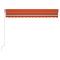 Auvent manuel rétractable avec LED 300x250 cm Orange et marronCréez un endroit agréable et frais dans vos espaces extérieurs avec cet auvent rétractable ! Cet auvent d'extérieur est construit avec un cadre en aluminium enduit de poudre résistant à la rouille, ce qui le rend léger mais robuste. Le tissu de l'auvent de patio est en polyester haute densité avec revêtement en PU, qui est résistant aux UV et à l'eau. De plus, l'angle et la hauteur peuvent être ajustés pour répondre à vos besoins spécifiques. Vous pouvez ouvrir et rétracter l'auvent en douceur avec la manivelle longue. De plus, les lampes à LED alimentées par l'énergie solaire assurent un éclairage nocturne économe en énergie. Les enfants doivent être surveillés pour s'assurer qu'ils ne jouent pas avec l'appareil.Tenez les enfants éloignés de la zone de montage. Attention : lisez attentivement les instructions avant l'utilisation et les conserver pour référence ultérieure.