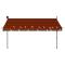 Auvent manuel rétractable avec LED 350 cm Orange et marronCet auvent rétractable sera idéal devant la fenêtre, sur la terrasse, le balcon ou dans votre jardin. Cet auvent hydrofuge et anti-salissure et résistant aux UV et aux intempéries est fabriqué en polyester de qualité avec un revêtement PU. Le cadre en acier fort rend l'auvent robuste et durable. L'auvent en polyester facile à nettoyer peut être retiré et lavé. Grâce à la manivelle de la poignée, ce store est rétractable. La hauteur et l'angle du store peuvent également être ajustés. De plus, les lampes LED alimentées par l'énergie solaire permettent d'éclairer la nuit. L'auvent est facile à assembler. Cet auvent est le choix idéal pour votre espace de vie extérieur et peut être actionné manuellement.