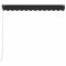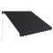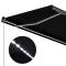 Auvent manuel rétractable avec LED 350x250 cm AnthraciteCréez un endroit agréable et frais sur votre terrasse et protégez-vous des rayons UV avec notre auvent rétractable manuel ! Cet auvent est idéal pour l'ombrage des fenêtres, dans les balcons, terrasses, cafés, ainsi que dans les restaurants avec vérandas arrière. Construit avec un cadre en aluminium résistant à la rouille et enduit de poudre, une conception légère et une structure solide, cet auvent peut résister à une certaine échelle de puissance du vent. Le tissu de l'auvent à bras pliable est en polyester haute densité avec revêtement PU, résistant à l'eau et aux UV et à la décoloration. L'angle et la hauteur peuvent être ajustés pour répondre à vos besoins spécifiques. Vous pouvez ouvrir et rétracter l'auvent extérieur en douceur via la manivelle longue. De plus, les lumières LED à énergie solaire sont attachées au bras, en fournissant de l'éclairage efficient en énergie la nuit. L'auvent avec LED est facile à monter sur le mur. Le matériel de montage et le manuel nécessaires sont inclus dans la livraison. Le mode d'emploi doit être lu avant le montage et l'utilisation du produit. Conservez ce manuel pour pouvoir vous y référer ultérieurement. Ce produit est destiné à être utilisé à l'extérieur et à l'intérieur comme protection solaire ou décoration uniquement. Ne l'utilisez jamais à d'autres fins et ne le modifiez pas. Ne l'utilisez pas dans des endroits soumis à des vibrations, à des impulsions ou à des températures élevées, comme les murs situés à proximité d'un four. Portez toujours un équipement de protection individuelle approprié lorsque vous montez et réglez le store. Il y a un risque de chute lors de travaux en hauteur, utilisez une protection anti-chute appropriée. Soyez prudent lors de l'installation, des risques d'écrasement et de cisaillement peuvent exister. N'enlevez PAS les bandes de sécurité. Ils ne peuvent être enlevés qu'une fois que toutes les étapes de l'assemblage sont terminées, que tous les boulons sont fixés et que l'article est fixé au mur. Des blessures graves peuvent résulter d'un retrait prématuré de l'emballage. Ce produit et ses pièces de fixation ne conviennent que pour une installation sur un mur en ciment ordinaire ou sur une maçonnerie stable et non enduite. Si le mur/la maçonnerie présente des fissures, vous devez consulter un professionnel. Si votre bâtiment possède une enveloppe extérieure (telle qu'une isolation, un double mur en briques ou un parement en briques), l'installation doit être effectuée par un professionnel. Ne l'installez jamais dans des endroits élevés et venteux, car le parasol pourrait tomber et blesser des personnes. N'installez pas le store si des pièces endommagées ou manquantes sont trouvées. Le store extérieur doit être rétracté si la vitesse du vent est supérieure à 28km/h. Avant d'ouvrir le store, assurez-vous que tous les supports sont solidement fixés aux montants du mur et que tous les boulons sont correctement serrés. FERMEZ TOUJOURS le store en cas de vent fort ou de bourrasque, de pluie et lorsqu'il n'est pas utilisé. Le non-respect de cette consigne peut entraîner des blessures corporelles et/ou des dommages matériels. De plus, les bras d'extension sont soumis à une forte tension et peuvent causer des dommages ou des blessures graves. Les enfants doivent être surveillés pour s'assurer qu'ils ne jouent pas avec l'appareil. N'utilisez pas l'appareil si une réparation ou un réglage est nécessaire. N'utilisez pas le store lorsque des travaux d'entretien, tels que le nettoyage des vitres, sont effectués à proximité. L'utilisation dans des conditions de gel peut endommager le store. Ne placez pas d'objets lourds sur l'armature, car ils pourraient tomber et causer des dommages. Des fixations trop serrées ou trop lâches peuvent endommager le produit ou être dangereuses pour les personnes. Attention : La toile ne doit pas être enfoncée pendant le fonctionnement, sinon l'eau s'y accumulera. Veuillez ne pas décoller et laver le tissu. Si vous devez remplacer le tissu, demandez l'aide d'experts. Faites attention lorsque vous actionnez le déverrouillage manuel alors que le store extérieur est rétracté, car il peut tomber rapidement si les ressorts sont faibles ou cassés. Danger ! Ressort fort lors de l'ouverture. Ne retirez pas cette corde si vous n'avez pas terminé toutes les étapes d'assemblage avec tous les boulons fixés et l'article fixé au mur ! Avertissement! Faire attention en desserrant les bras, car ils sont sous tension ! Un relâchement soudain du bras d'un auvent à bras articulés peut provoquer des blessures. Avertissement : Les instructions d'utilisation doivent être lues avant d'utiliser le produit. Avertissement: Le fonctionnement dans des conditions de gel peut endommager le produit. Utilisation externe dans les bâtiments et autres travaux de construction. GPSR