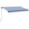 Auvent manuel rétractable avec LED 350x250 cm Bleu et blancCréez un endroit agréable et frais dans vos espaces extérieurs avec cet auvent rétractable ! Cet auvent d'extérieur est construit avec un cadre en aluminium enduit de poudre résistant à la rouille, ce qui le rend léger mais robuste. Le tissu de l'auvent de patio est en polyester haute densité avec revêtement en PU, qui est résistant aux UV et à l'eau. De plus, l'angle et la hauteur peuvent être ajustés pour répondre à vos besoins spécifiques. Vous pouvez ouvrir et rétracter l'auvent en douceur avec la manivelle longue. De plus, les lampes à LED alimentées par l'énergie solaire assurent un éclairage nocturne économe en énergie. GPSR