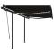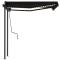 Auvent manuel rétractable avec LED 3x2,5 m AnthraciteCréez un endroit agréable et frais sur votre terrasse et protégez-vous des rayons UV avec cet auvent rétractable manuel ! Cet auvent d'extérieur est construit avec un cadre en aluminium enduit de poudre résistant à la rouille, ce qui le rend léger mais robuste. Le solide poteau en fer le rend stable. Le tissu de l'auvent de patio est en polyester haute densité avec revêtement en PU, qui est résistant aux UV et à l'eau. l'angle et la hauteur peuvent être ajustés pour répondre à vos besoins spécifiques. Vous pouvez ouvrir et rétracter l'auvent en douceur avec la manivelle longue. De plus, les lampes à LED alimentées par l'énergie solaire assurent un éclairage nocturne économe en énergie. Le mode d'emploi doit être lu avant le montage et l'utilisation du produit. Conservez ce manuel pour pouvoir vous y référer ultérieurement. Ce produit est destiné à être utilisé à l'extérieur et à l'intérieur comme protection solaire ou décoration uniquement. Ne l'utilisez jamais à d'autres fins et ne le modifiez pas. Ne l'utilisez pas dans des endroits soumis à des vibrations, à des impulsions ou à des températures élevées, comme les murs situés à proximité d'un four. Portez toujours un équipement de protection individuelle approprié lorsque vous montez et réglez le store. Il y a un risque de chute lors de travaux en hauteur, utilisez une protection anti-chute appropriée. Soyez prudent lors de l'installation, des risques d'écrasement et de cisaillement peuvent exister. N'enlevez PAS les bandes de sécurité. Ils ne peuvent être enlevés qu'une fois que toutes les étapes de l'assemblage sont terminées, que tous les boulons sont fixés et que l'article est fixé au mur. Des blessures graves peuvent résulter d'un retrait prématuré de l'emballage. Ce produit et ses pièces de fixation ne conviennent que pour une installation sur un mur en ciment ordinaire ou sur une maçonnerie stable et non enduite. Si le mur/la maçonnerie présente des fissures, vous devez consulter un professionnel. Si votre bâtiment possède une enveloppe extérieure (telle qu'une isolation, un double mur en briques ou un parement en briques), l'installation doit être effectuée par un professionnel. Ne l'installez jamais dans des endroits élevés et venteux, car le parasol pourrait tomber et blesser des personnes. N'installez pas le store si des pièces endommagées ou manquantes sont trouvées. Le store extérieur doit être rétracté si la vitesse du vent est supérieure à 28km/h. Avant d'ouvrir le store, assurez-vous que tous les supports sont solidement fixés aux montants du mur et que tous les boulons sont correctement serrés. FERMEZ TOUJOURS le store en cas de vent fort ou de bourrasque, de pluie et lorsqu'il n'est pas utilisé. Le non-respect de cette consigne peut entraîner des blessures corporelles et/ou des dommages matériels. De plus, les bras d'extension sont soumis à une forte tension et peuvent causer des dommages ou des blessures graves. Les enfants doivent être surveillés pour s'assurer qu'ils ne jouent pas avec l'appareil. N'utilisez pas l'appareil si une réparation ou un réglage est nécessaire. N'utilisez pas le store lorsque des travaux d'entretien, tels que le nettoyage des vitres, sont effectués à proximité. L'utilisation dans des conditions de gel peut endommager le store. Ne placez pas d'objets lourds sur l'armature, car ils pourraient tomber et causer des dommages. Des fixations trop serrées ou trop lâches peuvent endommager le produit ou être dangereuses pour les personnes. Attention : La toile ne doit pas être enfoncée pendant le fonctionnement, sinon l'eau s'y accumulera. Veuillez ne pas décoller et laver le tissu. Si vous devez remplacer le tissu, demandez l'aide d'experts. Faites attention lorsque vous actionnez le déverrouillage manuel alors que le store extérieur est rétracté, car il peut tomber rapidement si les ressorts sont faibles ou cassés. Danger ! Ressort fort lors de l'ouverture. Ne retirez pas cette corde si vous n'avez pas terminé toutes les étapes d'assemblage avec tous les boulons fixés et l'article fixé au mur ! Avertissement! Faire attention en desserrant les bras, car ils sont sous tension ! Un relâchement soudain du bras d'un auvent à bras articulés peut provoquer des blessures. Avertissement : Les instructions d'utilisation doivent être lues avant d'utiliser le produit. Avertissement: Le fonctionnement dans des conditions de gel peut endommager le produit. Utilisation externe dans les bâtiments et autres travaux de construction. GPSR