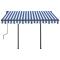 Auvent manuel rétractable avec LED 3x2,5 m Bleu et blancCréez un endroit agréable et frais sur votre terrasse et protégez-vous des rayons UV avec cet auvent rétractable manuel ! Cet auvent d'extérieur est construit avec un cadre en aluminium enduit de poudre résistant à la rouille, ce qui le rend léger mais robuste. Le solide poteau en fer le rend stable. Le tissu de l'auvent de patio est en polyester haute densité avec revêtement en PU, qui est résistant aux UV et à l'eau. l'angle et la hauteur peuvent être ajustés pour répondre à vos besoins spécifiques. Vous pouvez ouvrir et rétracter l'auvent en douceur avec la manivelle longue. De plus, les lampes à LED alimentées par l'énergie solaire assurent un éclairage nocturne économe en énergie. GPSR