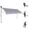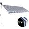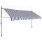 Auvent manuel rétractable avec LED 400 cm Bleu et blancCet auvent rétractable sera idéal devant la fenêtre, sur la terrasse, le balcon ou dans votre jardin. Cet auvent hydrofuge et anti-salissure et résistant aux UV et aux intempéries est fabriqué en polyester de qualité avec un revêtement PU. Le cadre en acier fort rend l'auvent robuste et durable. L'auvent en polyester facile à nettoyer peut être retiré et lavé. Grâce à la manivelle de la poignée, ce store est rétractable. La hauteur et l'angle du store peuvent également être ajustés. De plus, les lampes LED alimentées par l'énergie solaire permettent d'éclairer la nuit. L'auvent est facile à assembler. Cet auvent est le choix idéal pour votre espace de vie extérieur et peut être actionné manuellement. Ce produit ne doit pas être éliminé avec les autres déchets ménagers dans l'Union européenne.