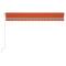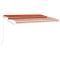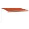 Auvent manuel rétractable avec LED 400x300 cm Orange et marronCréez un endroit agréable et frais dans vos espaces extérieurs avec cet auvent rétractable ! Cet auvent d'extérieur est construit avec un cadre en aluminium enduit de poudre résistant à la rouille, ce qui le rend léger mais robuste. Le tissu de l'auvent de patio est en polyester haute densité avec revêtement en PU, qui est résistant aux UV et à l'eau. De plus, l'angle et la hauteur peuvent être ajustés pour répondre à vos besoins spécifiques. Vous pouvez ouvrir et rétracter l'auvent en douceur avec la manivelle longue. De plus, les lampes à LED alimentées par l'énergie solaire assurent un éclairage nocturne économe en énergie. Les enfants doivent être surveillés pour s'assurer qu'ils ne jouent pas avec l'appareil.Tenez les enfants éloignés de la zone de montage. Attention : lisez attentivement les instructions avant l'utilisation et les conserver pour référence ultérieure.