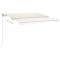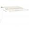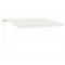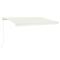 Auvent manuel rétractable avec LED 400x350 cm CrèmeCréez un endroit agréable et frais dans vos espaces extérieurs avec cet auvent rétractable ! Cet auvent d'extérieur est construit avec un cadre en aluminium enduit de poudre résistant à la rouille, ce qui le rend léger mais robuste. Le tissu de l'auvent de patio est en polyester haute densité avec revêtement en PU, qui est résistant aux UV et à l'eau. De plus, l'angle et la hauteur peuvent être ajustés pour répondre à vos besoins spécifiques. Vous pouvez ouvrir et rétracter l'auvent en douceur avec la manivelle longue. De plus, les lampes à LED alimentées par l'énergie solaire assurent un éclairage nocturne économe en énergie. Les enfants doivent être surveillés pour s'assurer qu'ils ne jouent pas avec l'appareil.Tenez les enfants éloignés de la zone de montage. Attention : lisez attentivement les instructions avant l'utilisation et les conserver pour référence ultérieure.