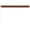 Auvent manuel rétractable avec LED 450x300 cm Orange et marronCréez un endroit agréable et frais sur votre terrasse et protégez-vous des rayons UV avec notre auvent rétractable manuel ! Cet auvent est idéal pour l'ombrage des fenêtres, dans les balcons, terrasses, cafés, ainsi que dans les restaurants avec vérandas arrière. Construit avec un cadre en aluminium résistant à la rouille et enduit de poudre, une conception légère et une structure solide, cet auvent peut résister à une certaine échelle de puissance du vent. Le tissu de l'auvent à bras pliable est en polyester haute densité avec revêtement PU, résistant à l'eau et aux UV et à la décoloration. L'angle et la hauteur peuvent être ajustés pour répondre à vos besoins spécifiques. Vous pouvez ouvrir et rétracter l'auvent extérieur en douceur via la manivelle longue. De plus, les lumières LED à énergie solaire sont attachées au bras, en fournissant de l'éclairage efficient en énergie la nuit. L'auvent avec LED est facile à monter sur le mur. Le matériel de montage et le manuel nécessaires sont inclus dans la livraison. Danger ! Ressort fort lors de l'ouverture. Ne retirez pas cette corde si vous n'avez pas terminé toutes les étapes d'assemblage avec tous les boulons fixés et l'article fixé au mur ! Avertissement! Faire attention en desserrant les bras, car ils sont sous tension ! Un relâchement soudain du bras d'un auvent à bras articulés peut provoquer des blessures. Avertissement : Les instructions d'utilisation doivent être lues avant d'utiliser le produit. Avertissement: Le fonctionnement dans des conditions de gel peut endommager le produit. Utilisation externe dans les bâtiments et autres travaux de construction.Les enfants doivent être surveillés pour s'assurer qu'ils ne jouent pas avec l'appareil. Gardez les enfants éloignés de la zone d'assemblage. Avertissement : lisez attentivement les instructions avant d'utiliser l'appareil et conservez-les pour toute référence ultérieure. GPSR