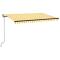 Auvent manuel rétractable avec LED 450x350 cm Jaune et blancCréez un endroit agréable et frais dans vos espaces extérieurs avec cet auvent rétractable ! Cet auvent d'extérieur est construit avec un cadre en aluminium enduit de poudre résistant à la rouille, ce qui le rend léger mais robuste. Le tissu de l'auvent de patio est en polyester haute densité avec revêtement en PU, qui est résistant aux UV et à l'eau. De plus, l'angle et la hauteur peuvent être ajustés pour répondre à vos besoins spécifiques. Vous pouvez ouvrir et rétracter l'auvent en douceur avec la manivelle longue. De plus, les lampes à LED alimentées par l'énergie solaire assurent un éclairage nocturne économe en énergie. Les enfants doivent être surveillés pour s'assurer qu'ils ne jouent pas avec l'appareil.Tenez les enfants éloignés de la zone de montage. Attention : lisez attentivement les instructions avant l'utilisation et les conserver pour référence ultérieure.