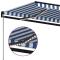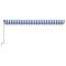 Auvent manuel rétractable avec LED 500x300 cm Bleu et blancCréez un endroit agréable et frais dans vos espaces extérieurs avec cet auvent rétractable ! Cet auvent d'extérieur est construit avec un cadre en aluminium enduit de poudre résistant à la rouille, ce qui le rend léger mais robuste. Le tissu de l'auvent de patio est en polyester haute densité avec revêtement en PU, qui est résistant aux UV et à l'eau. De plus, l'angle et la hauteur peuvent être ajustés pour répondre à vos besoins spécifiques. Vous pouvez ouvrir et rétracter l'auvent en douceur avec la manivelle longue. De plus, les lampes à LED alimentées par l'énergie solaire assurent un éclairage nocturne économe en énergie. Les enfants doivent être surveillés pour s'assurer qu'ils ne jouent pas avec l'appareil.Tenez les enfants éloignés de la zone de montage. Attention : lisez attentivement les instructions avant l'utilisation et les conserver pour référence ultérieure.