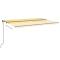 Auvent manuel rétractable avec LED 500x300 cm Jaune et blancCréez un endroit agréable et frais dans vos espaces extérieurs avec cet auvent rétractable ! Cet auvent d'extérieur est construit avec un cadre en aluminium enduit de poudre résistant à la rouille, ce qui le rend léger mais robuste. Le tissu de l'auvent de patio est en polyester haute densité avec revêtement en PU, qui est résistant aux UV et à l'eau. De plus, l'angle et la hauteur peuvent être ajustés pour répondre à vos besoins spécifiques. Vous pouvez ouvrir et rétracter l'auvent en douceur avec la manivelle longue. De plus, les lampes à LED alimentées par l'énergie solaire assurent un éclairage nocturne économe en énergie. Les enfants doivent être surveillés pour s'assurer qu'ils ne jouent pas avec l'appareil.Tenez les enfants éloignés de la zone de montage. Attention : lisez attentivement les instructions avant l'utilisation et les conserver pour référence ultérieure.