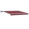 Auvent manuel rétractable avec LED bordeaux 300x250 cmCréez un endroit agréable et frais sur votre terrasse et protégez-vous des rayons UV avec cet auvent rétractable ! Tissu résistant à l'eau et aux UV : le tissu de l'auvent est fabriqué en polyester haute densité avec un revêtement PU, qui est résistant à l'eau, aux UV et à la décoloration. Facile à utiliser : l'angle et la hauteur peuvent être réglés pour répondre à vos différents besoins. La manivelle permet d'ouvrir et de rétracter le store en douceur. Lumières LED : les lumières LED intégrées de l'auvent illuminent votre espace de vie extérieur et créent une ambiance chaleureuse et romantique lorsque le soleil se couche. Multifonctionnel : l'auvent rétractable présente un design simple et élégant qui s'intégrera parfaitement à votre maison ou dans un cadre commercial. Il convient à de nombreux endroits, tels que les balcons, les patios, les cours, les restaurants, les cafés, les magasins, etc. Les enfants doivent être surveillés pour s'assurer qu'ils ne jouent pas avec l'appareil.Tenez les enfants éloignés de la zone de montage. Attention : lisez attentivement les instructions avant l'utilisation et les conserver pour référence ultérieure.