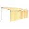 Auvent manuel rétractable avec store 3x2,5 m Jaune et blancCréez un endroit agréable et frais dans vos espaces extérieurs avec cet auvent rétractable ! Construit avec un cadre en aluminium enduit de poudre résistant à la rouille, cet auvent d'extérieur est léger et robuste. Le tissu de l'auvent de patio est en polyester haute densité avec revêtement en PU, qui est résistant aux UV et à l'eau. De plus, l'angle et la hauteur peuvent être ajustés pour répondre à vos besoins spécifiques. Vous pouvez ouvrir et rétracter l'auvent en douceur avec la manivelle longue. Le store vous protège des rayons UV et offre une protection d'intimité. Les enfants doivent être surveillés pour s'assurer qu'ils ne jouent pas avec l'appareil.Tenez les enfants éloignés de la zone de montage. Attention : lisez attentivement les instructions avant l'utilisation et les conserver pour référence ultérieure.