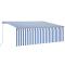 Auvent manuel rétractable avec store 4x3 m Bleu et blancCréez un endroit agréable et frais dans vos espaces extérieurs avec cet auvent rétractable ! Construit avec un cadre en aluminium enduit de poudre résistant à la rouille, cet auvent d'extérieur est léger et robuste. Le tissu de l'auvent de patio est en polyester haute densité avec revêtement en PU, qui est résistant aux UV et à l'eau. De plus, l'angle et la hauteur peuvent être ajustés pour répondre à vos besoins spécifiques. Vous pouvez ouvrir et rétracter l'auvent en douceur avec la manivelle longue. Le store vous protège des rayons UV et offre une protection d'intimité. Les enfants doivent être surveillés pour s'assurer qu'ils ne jouent pas avec l'appareil.Tenez les enfants éloignés de la zone de montage. Attention : lisez attentivement les instructions avant l'utilisation et les conserver pour référence ultérieure.