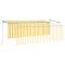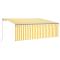 Auvent manuel rétractable avec store 4x3 m Jaune et blancCréez un endroit agréable et frais dans vos espaces extérieurs avec cet auvent rétractable ! Construit avec un cadre en aluminium enduit de poudre résistant à la rouille, cet auvent d'extérieur est léger et robuste. Le tissu de l'auvent de patio est en polyester haute densité avec revêtement en PU, qui est résistant aux UV et à l'eau. De plus, l'angle et la hauteur peuvent être ajustés pour répondre à vos besoins spécifiques. Vous pouvez ouvrir et rétracter l'auvent en douceur avec la manivelle longue. Le store vous protège des rayons UV et offre une protection d'intimité. Le mode d'emploi doit être lu avant le montage et l'utilisation du produit. Conservez ce manuel pour pouvoir vous y référer ultérieurement. Ce produit est destiné à être utilisé à l'extérieur et à l'intérieur comme protection solaire ou décoration uniquement. Ne l'utilisez jamais à d'autres fins et ne le modifiez pas. Ne l'utilisez pas dans des endroits soumis à des vibrations, à des impulsions ou à des températures élevées, comme les murs situés à proximité d'un four. Portez toujours un équipement de protection individuelle approprié lorsque vous montez et réglez le store. Il y a un risque de chute lors de travaux en hauteur, utilisez une protection anti-chute appropriée. Soyez prudent lors de l'installation, des risques d'écrasement et de cisaillement peuvent exister. N'enlevez PAS les bandes de sécurité. Ils ne peuvent être enlevés qu'une fois que toutes les étapes de l'assemblage sont terminées, que tous les boulons sont fixés et que l'article est fixé au mur. Des blessures graves peuvent résulter d'un retrait prématuré de l'emballage. Ce produit et ses pièces de fixation ne conviennent que pour une installation sur un mur en ciment ordinaire ou sur une maçonnerie stable et non enduite. Si le mur/la maçonnerie présente des fissures, vous devez consulter un professionnel. Si votre bâtiment possède une enveloppe extérieure (telle qu'une isolation, un double mur en briques ou un parement en briques), l'installation doit être effectuée par un professionnel. Ne l'installez jamais dans des endroits élevés et venteux, car le parasol pourrait tomber et blesser des personnes. N'installez pas le store si des pièces endommagées ou manquantes sont trouvées. Le store extérieur doit être rétracté si la vitesse du vent est supérieure à 28km/h. Avant d'ouvrir le store, assurez-vous que tous les supports sont solidement fixés aux montants du mur et que tous les boulons sont correctement serrés. FERMEZ TOUJOURS le store en cas de vent fort ou de bourrasque, de pluie et lorsqu'il n'est pas utilisé. Le non-respect de cette consigne peut entraîner des blessures corporelles et/ou des dommages matériels. De plus, les bras d'extension sont soumis à une forte tension et peuvent causer des dommages ou des blessures graves. Les enfants doivent être surveillés pour s'assurer qu'ils ne jouent pas avec l'appareil. N'utilisez pas l'appareil si une réparation ou un réglage est nécessaire. N'utilisez pas le store lorsque des travaux d'entretien, tels que le nettoyage des vitres, sont effectués à proximité. L'utilisation dans des conditions de gel peut endommager le store. Ne placez pas d'objets lourds sur l'armature, car ils pourraient tomber et causer des dommages. Des fixations trop serrées ou trop lâches peuvent endommager le produit ou être dangereuses pour les personnes. Attention : La toile ne doit pas être enfoncée pendant le fonctionnement, sinon l'eau s'y accumulera. Veuillez ne pas décoller et laver le tissu. Si vous devez remplacer le tissu, demandez l'aide d'experts. Faites attention lorsque vous actionnez le déverrouillage manuel alors que le store extérieur est rétracté, car il peut tomber rapidement si les ressorts sont faibles ou cassés. Danger ! Ressort fort lors de l'ouverture. Ne retirez pas cette corde si vous n'avez pas terminé toutes les étapes d'assemblage avec tous les boulons fixés et l'article fixé au mur ! Avertissement! Faire attention en desserrant les bras, car ils sont sous tension ! Un relâchement soudain du bras d'un auvent à bras articulés peut provoquer des blessures. Avertissement : Les instructions d'utilisation doivent être lues avant d'utiliser le produit. Avertissement: Le fonctionnement dans des conditions de gel peut endommager le produit. Utilisation externe dans les bâtiments et autres travaux de construction. GPSR