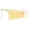 Auvent manuel rétractable avec store 4x3 m Jaune et blancCréez un endroit agréable et frais dans vos espaces extérieurs avec cet auvent rétractable ! Construit avec un cadre en aluminium enduit de poudre résistant à la rouille, cet auvent d'extérieur est léger et robuste. Le tissu de l'auvent de patio est en polyester haute densité avec revêtement en PU, qui est résistant aux UV et à l'eau. De plus, l'angle et la hauteur peuvent être ajustés pour répondre à vos besoins spécifiques. Vous pouvez ouvrir et rétracter l'auvent en douceur avec la manivelle longue. Le store vous protège des rayons UV et offre une protection d'intimité. Danger ! Ressort fort lors de l'ouverture. Ne retirez pas cette corde si vous n'avez pas terminé toutes les étapes d'assemblage avec tous les boulons fixés et l'article fixé au mur ! Avertissement! Faire attention en desserrant les bras, car ils sont sous tension ! Un relâchement soudain du bras d'un auvent à bras articulés peut provoquer des blessures. Avertissement : Les instructions d'utilisation doivent être lues avant d'utiliser le produit. Avertissement: Le fonctionnement dans des conditions de gel peut endommager le produit. Utilisation externe dans les bâtiments et autres travaux de construction.Les enfants doivent être surveillés pour s'assurer qu'ils ne jouent pas avec l'appareil. Gardez les enfants éloignés de la zone d'assemblage. Avertissement : lisez attentivement les instructions avant d'utiliser l'appareil et conservez-les pour toute référence ultérieure.