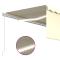 Auvent manuel rétractable avec store et LED 4x3 m CrèmeCréez un endroit agréable et frais dans vos espaces extérieurs avec cet auvent rétractable ! Cet auvent d'extérieur est construit avec un cadre en aluminium enduit de poudre résistant à la rouille, ce qui le rend léger mais robuste. Le tissu de l'auvent de patio est en polyester haute densité avec revêtement en PU, qui est résistant aux UV et à l'eau. De plus, l'angle et la hauteur peuvent être ajustés pour répondre à vos besoins spécifiques. Vous pouvez ouvrir et rétracter l'auvent en douceur avec la manivelle longue. De plus, les lampes à LED alimentées par l'énergie solaire assurent un éclairage nocturne économe en énergie. Le store vous protège des rayons UV et offre une protection de l'intimité. Danger ! Ressort fort lors de l'ouverture. Ne retirez pas cette corde si vous n'avez pas terminé toutes les étapes d'assemblage avec tous les boulons fixés et l'article fixé au mur ! Avertissement! Faire attention en desserrant les bras, car ils sont sous tension ! Un relâchement soudain du bras d'un auvent à bras articulés peut provoquer des blessures. Avertissement : Les instructions d'utilisation doivent être lues avant d'utiliser le produit. Avertissement: Le fonctionnement dans des conditions de gel peut endommager le produit. Utilisation externe dans les bâtiments et autres travaux de construction. Ne laissez pas les enfants jouer avec le dispositif de commande du store. Gardez la télécommande hors de portée des enfants. Les enfants doivent être surveillés pour s'assurer qu'ils ne jouent pas avec l'appareil. Gardez les enfants éloignés de la zone d'assemblage. Avertissement : lisez attentivement les instructions avant d'utiliser l'appareil et conservez-les pour toute référence ultérieure. Le mode d'emploi doit être lu avant le montage et l'utilisation du produit. Conservez ce manuel pour pouvoir vous y référer ultérieurement. Ce produit est destiné à être utilisé à l'extérieur et à l'intérieur comme protection solaire ou décoration uniquement. Ne l'utilisez jamais à d'autres fins et ne le modifiez pas. Ne l'utilisez pas dans des endroits soumis à des vibrations, à des impulsions ou à des températures élevées, comme les murs situés à proximité d'un four. Portez toujours un équipement de protection individuelle approprié lorsque vous montez et réglez le store. Il y a un risque de chute lors de travaux en hauteur, utilisez une protection anti-chute appropriée. Soyez prudent lors de l'installation, des risques d'écrasement et de cisaillement peuvent exister. N'enlevez PAS les bandes de sécurité. Ils ne peuvent être enlevés qu'une fois que toutes les étapes de l'assemblage sont terminées, que tous les boulons sont fixés et que l'article est fixé au mur. Des blessures graves peuvent résulter d'un retrait prématuré de l'emballage. Ce produit et ses pièces de fixation ne conviennent que pour une installation sur un mur en ciment ordinaire ou sur une maçonnerie stable et non enduite. Si le mur/la maçonnerie présente des fissures, vous devez consulter un professionnel. Si votre bâtiment possède une enveloppe extérieure (telle qu'une isolation, un double mur en briques ou un parement en briques), l'installation doit être effectuée par un professionnel. Ne l'installez jamais dans des endroits élevés et venteux, car le parasol pourrait tomber et blesser des personnes. N'installez pas le store si des pièces endommagées ou manquantes sont trouvées. Le store extérieur doit être rétracté si la vitesse du vent est supérieure à 28km/h. Avant d'ouvrir le store, assurez-vous que tous les supports sont solidement fixés aux montants du mur et que tous les boulons sont correctement serrés. FERMEZ TOUJOURS le store en cas de vent fort ou de bourrasque, de pluie et lorsqu'il n'est pas utilisé. Le non-respect de cette consigne peut entraîner des blessures corporelles et/ou des dommages matériels. De plus, les bras d'extension sont soumis à une forte tension et peuvent causer des dommages ou des blessures graves. Les enfants doivent être surveillés pour s'assurer qu'ils ne jouent pas avec l'appareil. N'utilisez pas l'appareil si une réparation ou un réglage est nécessaire. N'utilisez pas le store lorsque des travaux d'entretien, tels que le nettoyage des vitres, sont effectués à proximité. L'utilisation dans des conditions de gel peut endommager le store. Ne placez pas d'objets lourds sur l'armature, car ils pourraient tomber et causer des dommages. Des fixations trop serrées ou trop lâches peuvent endommager le produit ou être dangereuses pour les personnes. Attention : La toile ne doit pas être enfoncée pendant le fonctionnement, sinon l'eau s'y accumulera. Veuillez ne pas décoller et laver le tissu. Si vous devez remplacer le tissu, demandez l'aide d'experts. Faites attention lorsque vous actionnez le déverrouillage manuel alors que le store extérieur est rétracté, car il peut tomber rapidement si les ressorts sont faibles ou cassés. GPSR