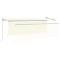 Auvent manuel rétractable avec store et LED 4x3m CrèmeCréez un endroit agréable et frais dans vos espaces extérieurs avec cet auvent rétractable ! Cet auvent d'extérieur est construit avec un cadre en aluminium enduit de poudre résistant à la rouille, ce qui le rend léger mais robuste. Le tissu de l'auvent de patio est en polyester haute densité avec revêtement en PU, qui est résistant aux UV et à l'eau. De plus, l'angle et la hauteur peuvent être ajustés pour répondre à vos besoins spécifiques. Vous pouvez ouvrir et rétracter l'auvent en douceur avec la manivelle longue. De plus, les lampes à LED alimentées par l'énergie solaire assurent un éclairage nocturne économe en énergie. Le store vous protège des rayons UV et offre une protection de l'intimité. Danger ! Ressort fort lors de l'ouverture. Ne retirez pas cette corde si vous n'avez pas terminé toutes les étapes d'assemblage avec tous les boulons fixés et l'article fixé au mur ! Avertissement! Faire attention en desserrant les bras, car ils sont sous tension ! Un relâchement soudain du bras d'un auvent à bras articulés peut provoquer des blessures. Avertissement : Les instructions d'utilisation doivent être lues avant d'utiliser le produit. Avertissement: Le fonctionnement dans des conditions de gel peut endommager le produit. Utilisation externe dans les bâtiments et autres travaux de construction. Ne laissez pas les enfants jouer avec le dispositif de commande du store. Gardez la télécommande hors de portée des enfants. Les enfants doivent être surveillés pour s'assurer qu'ils ne jouent pas avec l'appareil. Gardez les enfants éloignés de la zone d'assemblage. Avertissement : lisez attentivement les instructions avant d'utiliser l'appareil et conservez-les pour toute référence ultérieure. Le mode d'emploi doit être lu avant le montage et l'utilisation du produit. Conservez ce manuel pour pouvoir vous y référer ultérieurement. Ce produit est destiné à être utilisé à l'extérieur et à l'intérieur comme protection solaire ou décoration uniquement. Ne l'utilisez jamais à d'autres fins et ne le modifiez pas. Ne l'utilisez pas dans des endroits soumis à des vibrations, à des impulsions ou à des températures élevées, comme les murs situés à proximité d'un four. Portez toujours un équipement de protection individuelle approprié lorsque vous montez et réglez le store. Il y a un risque de chute lors de travaux en hauteur, utilisez une protection anti-chute appropriée. Soyez prudent lors de l'installation, des risques d'écrasement et de cisaillement peuvent exister. N'enlevez PAS les bandes de sécurité. Ils ne peuvent être enlevés qu'une fois que toutes les étapes de l'assemblage sont terminées, que tous les boulons sont fixés et que l'article est fixé au mur. Des blessures graves peuvent résulter d'un retrait prématuré de l'emballage. Ce produit et ses pièces de fixation ne conviennent que pour une installation sur un mur en ciment ordinaire ou sur une maçonnerie stable et non enduite. Si le mur/la maçonnerie présente des fissures, vous devez consulter un professionnel. Si votre bâtiment possède une enveloppe extérieure (telle qu'une isolation, un double mur en briques ou un parement en briques), l'installation doit être effectuée par un professionnel. Ne l'installez jamais dans des endroits élevés et venteux, car le parasol pourrait tomber et blesser des personnes. N'installez pas le store si des pièces endommagées ou manquantes sont trouvées. Le store extérieur doit être rétracté si la vitesse du vent est supérieure à 28km/h. Avant d'ouvrir le store, assurez-vous que tous les supports sont solidement fixés aux montants du mur et que tous les boulons sont correctement serrés. FERMEZ TOUJOURS le store en cas de vent fort ou de bourrasque, de pluie et lorsqu'il n'est pas utilisé. Le non-respect de cette consigne peut entraîner des blessures corporelles et/ou des dommages matériels. De plus, les bras d'extension sont soumis à une forte tension et peuvent causer des dommages ou des blessures graves. Les enfants doivent être surveillés pour s'assurer qu'ils ne jouent pas avec l'appareil. N'utilisez pas l'appareil si une réparation ou un réglage est nécessaire. N'utilisez pas le store lorsque des travaux d'entretien, tels que le nettoyage des vitres, sont effectués à proximité. L'utilisation dans des conditions de gel peut endommager le store. Ne placez pas d'objets lourds sur l'armature, car ils pourraient tomber et causer des dommages. Des fixations trop serrées ou trop lâches peuvent endommager le produit ou être dangereuses pour les personnes. Attention : La toile ne doit pas être enfoncée pendant le fonctionnement, sinon l'eau s'y accumulera. Veuillez ne pas décoller et laver le tissu. Si vous devez remplacer le tissu, demandez l'aide d'experts. Faites attention lorsque vous actionnez le déverrouillage manuel alors que le store extérieur est rétracté, car il peut tomber rapidement si les ressorts sont faibles ou cassés. GPSR