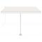 Auvent manuel rétractable sur pied 300x250 cm CrèmeCréez un endroit agréable et frais dans vos espaces extérieurs avec cet auvent rétractable ! Construit avec un cadre en aluminium enduit de poudre résistant à la rouille, cet auvent d'extérieur est léger mais robuste. Le tissu de l'auvent de terrasse est en polyester haute densité avec revêtement de PU, résistant aux UV et à l'eau. De plus, l'angle et la hauteur peuvent être ajustés pour répondre à vos besoins spécifiques. Vous pouvez ouvrir et rétracter le store autoportant en douceur grâce à la longue manivelle. La base robuste peut pivoter à 360 degrés, ce qui permet un ajustement maximal. Le mode d'emploi doit être lu avant le montage et l'utilisation du produit. Conservez ce manuel pour pouvoir vous y référer ultérieurement. Ce produit est destiné à être utilisé à l'extérieur et à l'intérieur comme protection solaire ou décoration uniquement. Ne l'utilisez jamais à d'autres fins et ne le modifiez pas. Ne l'utilisez pas dans des endroits soumis à des vibrations, à des impulsions ou à des températures élevées, comme les murs situés à proximité d'un four. Portez toujours un équipement de protection individuelle approprié lorsque vous montez et réglez le store. Il y a un risque de chute lors de travaux en hauteur, utilisez une protection anti-chute appropriée. Soyez prudent lors de l'installation, des risques d'écrasement et de cisaillement peuvent exister. N'enlevez PAS les bandes de sécurité. Ils ne peuvent être enlevés qu'une fois que toutes les étapes de l'assemblage sont terminées, que tous les boulons sont fixés et que l'article est fixé au mur. Des blessures graves peuvent résulter d'un retrait prématuré de l'emballage. Ce produit et ses pièces de fixation ne conviennent que pour une installation sur un mur en ciment ordinaire ou sur une maçonnerie stable et non enduite. Si le mur/la maçonnerie présente des fissures, vous devez consulter un professionnel. Si votre bâtiment possède une enveloppe extérieure (telle qu'une isolation, un double mur en briques ou un parement en briques), l'installation doit être effectuée par un professionnel. Ne l'installez jamais dans des endroits élevés et venteux, car le parasol pourrait tomber et blesser des personnes. N'installez pas le store si des pièces endommagées ou manquantes sont trouvées. Le store extérieur doit être rétracté si la vitesse du vent est supérieure à 28km/h. Avant d'ouvrir le store, assurez-vous que tous les supports sont solidement fixés aux montants du mur et que tous les boulons sont correctement serrés. FERMEZ TOUJOURS le store en cas de vent fort ou de bourrasque, de pluie et lorsqu'il n'est pas utilisé. Le non-respect de cette consigne peut entraîner des blessures corporelles et/ou des dommages matériels. De plus, les bras d'extension sont soumis à une forte tension et peuvent causer des dommages ou des blessures graves. Les enfants doivent être surveillés pour s'assurer qu'ils ne jouent pas avec l'appareil. N'utilisez pas l'appareil si une réparation ou un réglage est nécessaire. N'utilisez pas le store lorsque des travaux d'entretien, tels que le nettoyage des vitres, sont effectués à proximité. L'utilisation dans des conditions de gel peut endommager le store. Ne placez pas d'objets lourds sur l'armature, car ils pourraient tomber et causer des dommages. Des fixations trop serrées ou trop lâches peuvent endommager le produit ou être dangereuses pour les personnes. Attention : La toile ne doit pas être enfoncée pendant le fonctionnement, sinon l'eau s'y accumulera. Veuillez ne pas décoller et laver le tissu. Si vous devez remplacer le tissu, demandez l'aide d'experts. Faites attention lorsque vous actionnez le déverrouillage manuel alors que le store extérieur est rétracté, car il peut tomber rapidement si les ressorts sont faibles ou cassés. Danger ! Ressort fort lors de l'ouverture. Ne retirez pas cette corde si vous n'avez pas terminé toutes les étapes d'assemblage avec tous les boulons fixés et l'article fixé au mur ! Avertissement! Faire attention en desserrant les bras, car ils sont sous tension ! Un relâchement soudain du bras d'un auvent à bras articulés peut provoquer des blessures. Avertissement : Les instructions d'utilisation doivent être lues avant d'utiliser le produit. Avertissement: Le fonctionnement dans des conditions de gel peut endommager le produit. Utilisation externe dans les bâtiments et autres travaux de construction. GPSR