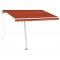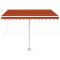 Auvent manuel rétractable sur pied 300x250 cm Orange et marronCréez un endroit agréable et frais dans vos espaces extérieurs avec cet auvent rétractable ! Construit avec un cadre en aluminium enduit de poudre résistant à la rouille, cet auvent d'extérieur est léger mais robuste. Le tissu de l'auvent de terrasse est en polyester haute densité avec revêtement de PU, résistant aux UV et à l'eau. De plus, l'angle et la hauteur peuvent être ajustés pour répondre à vos besoins spécifiques. Vous pouvez ouvrir et rétracter le store autoportant en douceur grâce à la longue manivelle. La base robuste peut pivoter à 360 degrés, ce qui permet un ajustement maximal. Les enfants doivent être surveillés pour s'assurer qu'ils ne jouent pas avec l'appareil.Tenez les enfants éloignés de la zone de montage. Attention : lisez attentivement les instructions avant l'utilisation et les conserver pour référence ultérieure.