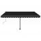 Auvent manuel rétractable sur pied 400x300 cm AnthraciteCréez un endroit agréable et frais dans vos espaces extérieurs avec cet auvent rétractable ! Construit avec un cadre en aluminium enduit de poudre résistant à la rouille, cet auvent d'extérieur est léger mais robuste. Le tissu de l'auvent de terrasse est en polyester haute densité avec revêtement de PU, résistant aux UV et à l'eau. De plus, l'angle et la hauteur peuvent être ajustés pour répondre à vos besoins spécifiques. Vous pouvez ouvrir et rétracter le store autoportant en douceur grâce à la longue manivelle. La base robuste peut pivoter à 360 degrés, ce qui permet un ajustement maximal. Les enfants doivent être surveillés pour s'assurer qu'ils ne jouent pas avec l'appareil.Tenez les enfants éloignés de la zone de montage. Attention : lisez attentivement les instructions avant l'utilisation et les conserver pour référence ultérieure.